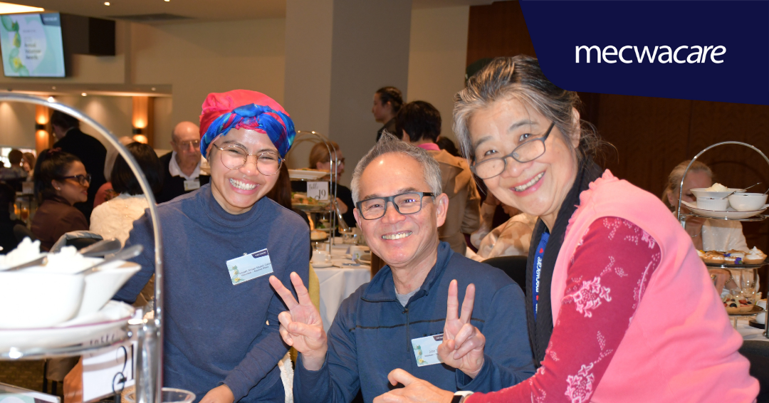 Guests enjoyed a delightful spread of savoury bites and sweet treats, while learning about the many ways volunteers support mecwacare – from gardening and dog companion visits to book clubs and intergenerational programs.