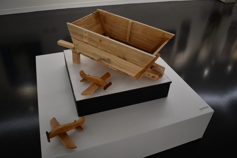 A range of mediums was displayed, and the beautiful creations made by mecwacare clients varied from timber and doily collages on canvas to handmade shelves, hessian and cotton collaged onto timber bases to wooden planes and wheelbarrow creations, and carefully colored icy pole sticks placed purposefully in patterns inside a painted, handmade frame.